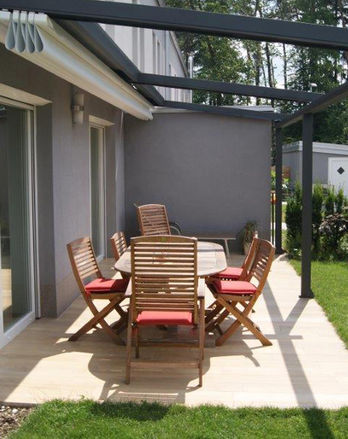 Unleash your creativity and tailor your pergola to perfection with our versatile side elements. Choose from glass sliding panels, guillotines, or screens that effortlessly expand your living space. Harness the power to command sunlight – whether to embrace its warmth or temper its glow – all made possible with our efficient sun protection fabric.